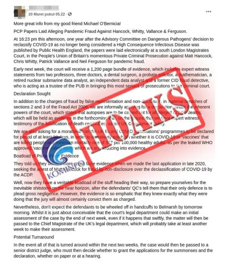 Dalam postingan itu tertulis, menurut studi WHO yang bocor, jika mereka menghentikan vaksinasi, minimal 377 orang dari setiap 100 ribu orang yang seharusnya disuntik akan hidup.