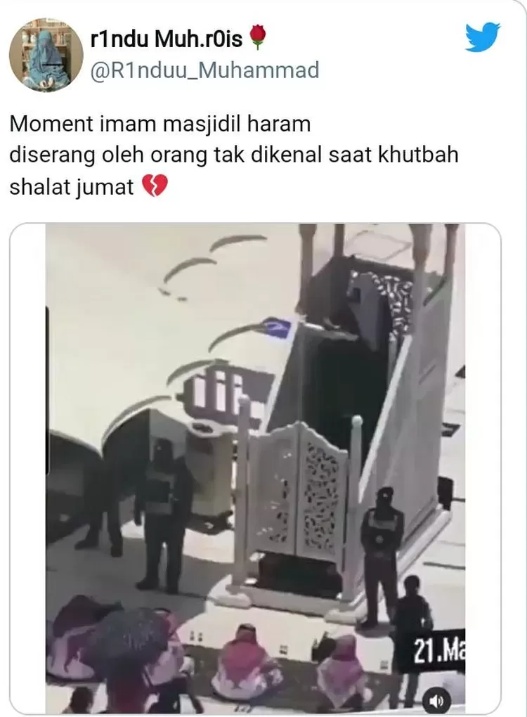ARAB SAUDI, klikaktual.com - Pasukan keamanan Arab Saudi menangkap seorang pria yang mencoba menyerang khotib pada salat Jumat di Masjidil Haram, Makkah (21/5/2021).