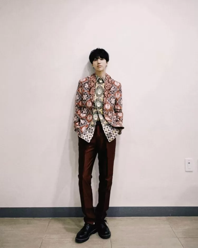 Personel lainnya Yesung mengenakan batik berwarna cokelat dengan kombinasi motif megamendung. "Apakah cocok untukku? Terimakasih kepada Ridwan Kamil yang merancang batik ini. Termasuk untuk Jawa Barat dan Indonesia. Aku Cinta Kamu," tulisnya di akun instagramnya @yesung1106.