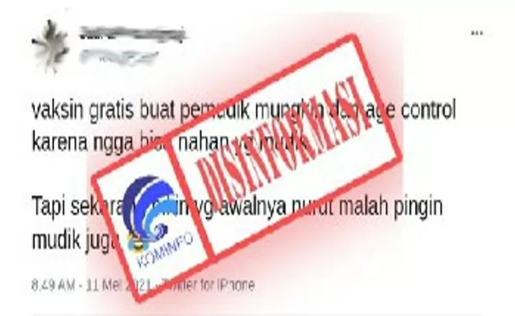 Disinformasi mengenai pemberian vaksin gratis untuk pemudik