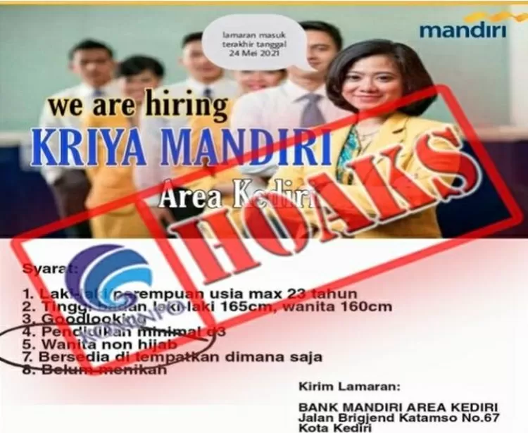 JAKARTA, klikaktual.com - Sebuah poster berisi rekrutmen pegawai Bank Mandiri yang salah satu syaratnya adalah perempuan tidak berjilbab, beredar luas di media sosial.